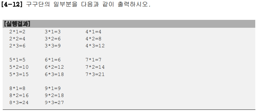 | 자바의 정석 4-12 구구단의 일부분 출력 (0) | 2022.07.13 |