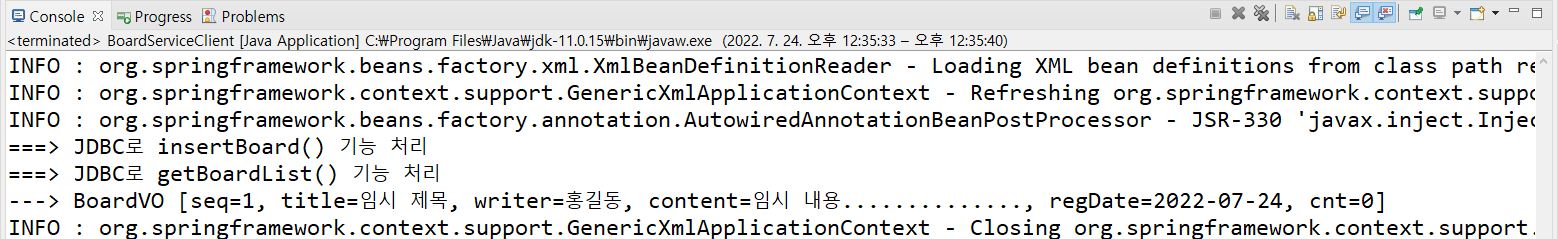 따라서 파일을 src/main/java/com.springbook.biz.board 패키지 밑으로 이동하여 실행한다.