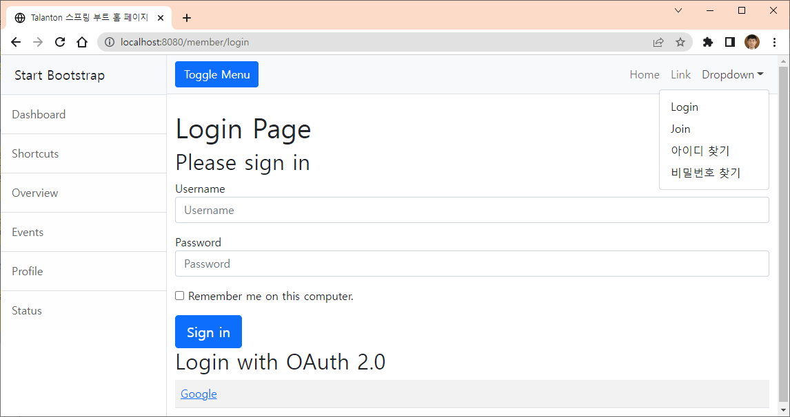 이전 게시글에서는 로그인 여부에 따른 메뉴 표시와 로그아웃 기능을 구현하였다.(https://talanton.tistory.com/128)