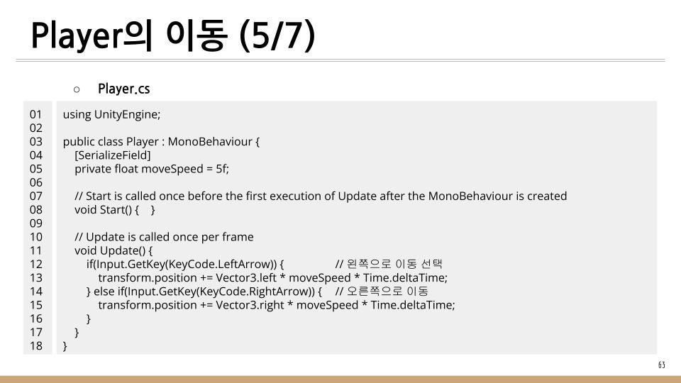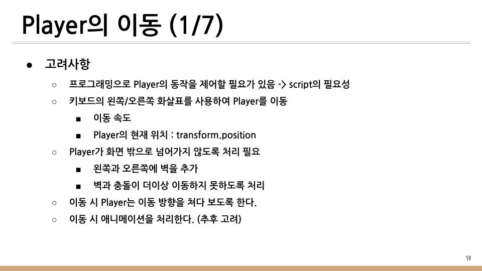 이 글에서 기술할 내용은 Player를 이동하여 위에서 떨어지는 똥을 피하는 것을 기술한다.