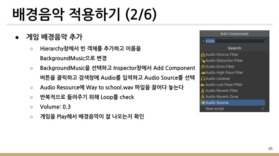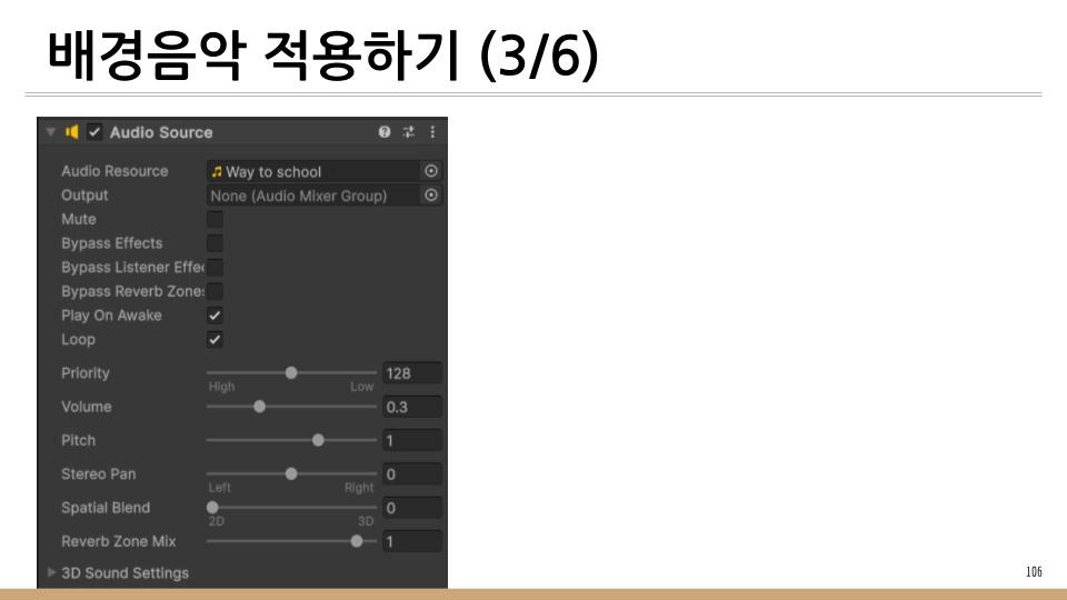 이 글에서는 게임을 Play할 때 배경음악이 들리도록 설정할 것이다.