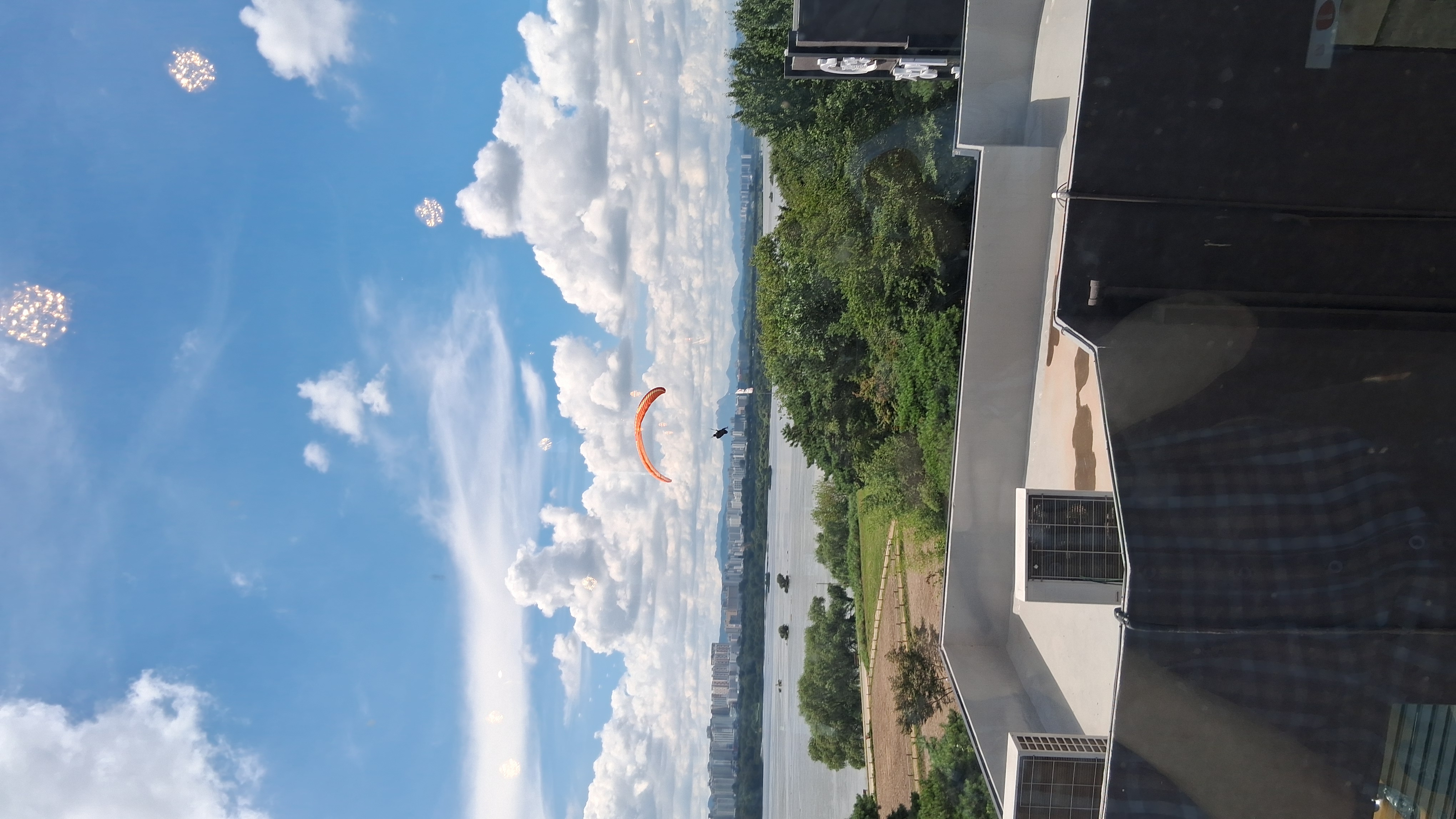 카페에 갔는데, 근처 산에서 패러글라이딩을 하여 카페 옆으로 착륙. 새로운 풍경으로 핫한 장소로 떠 오를듯