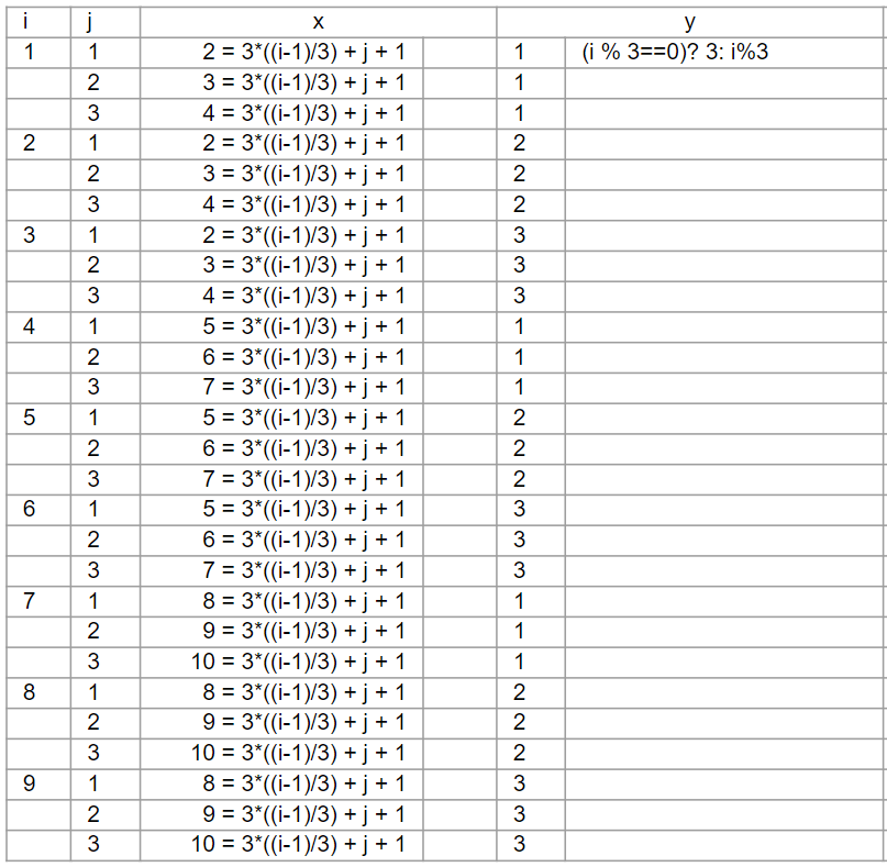 int x = 3*((i-1)/3)+j+1;