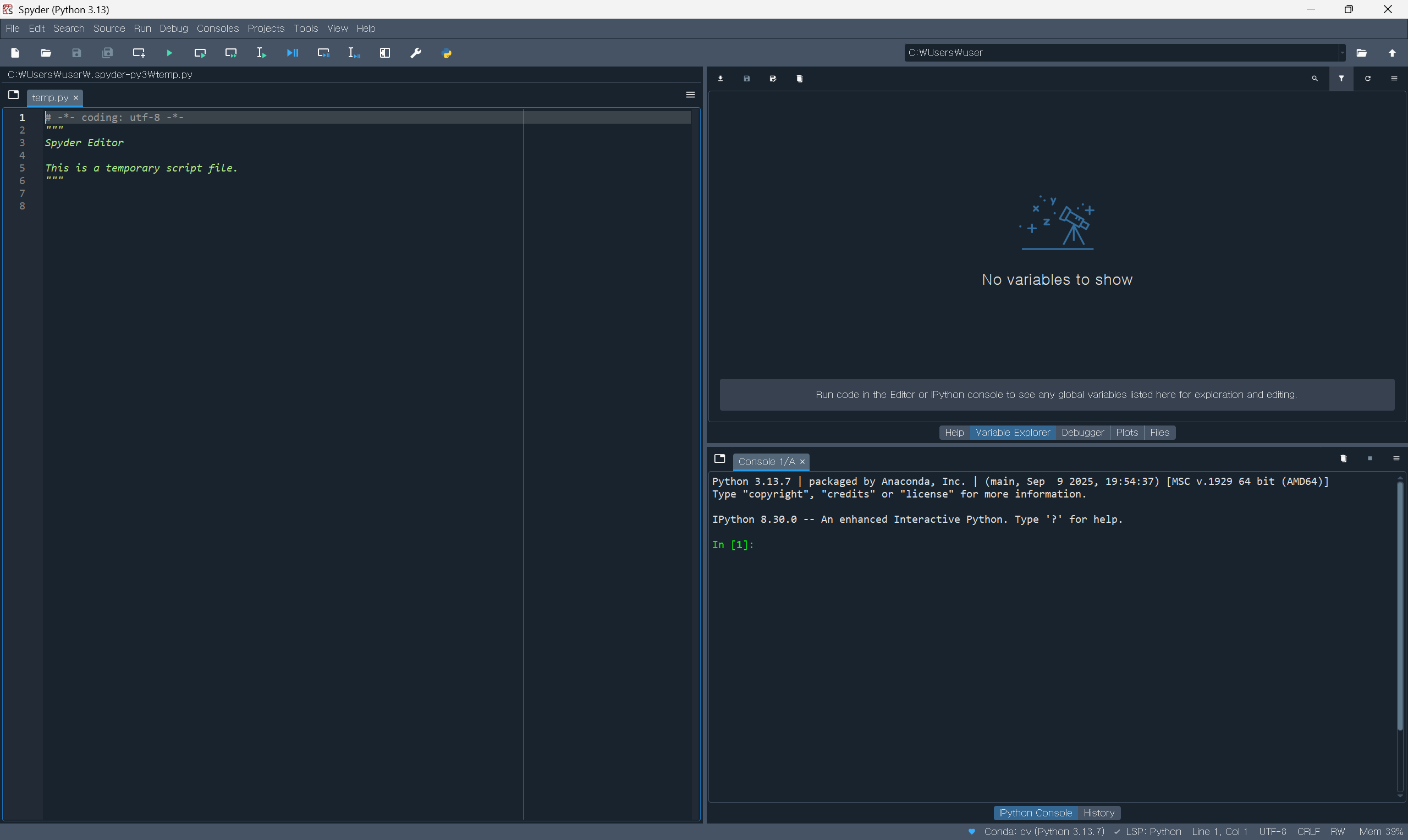 spyder를 실행