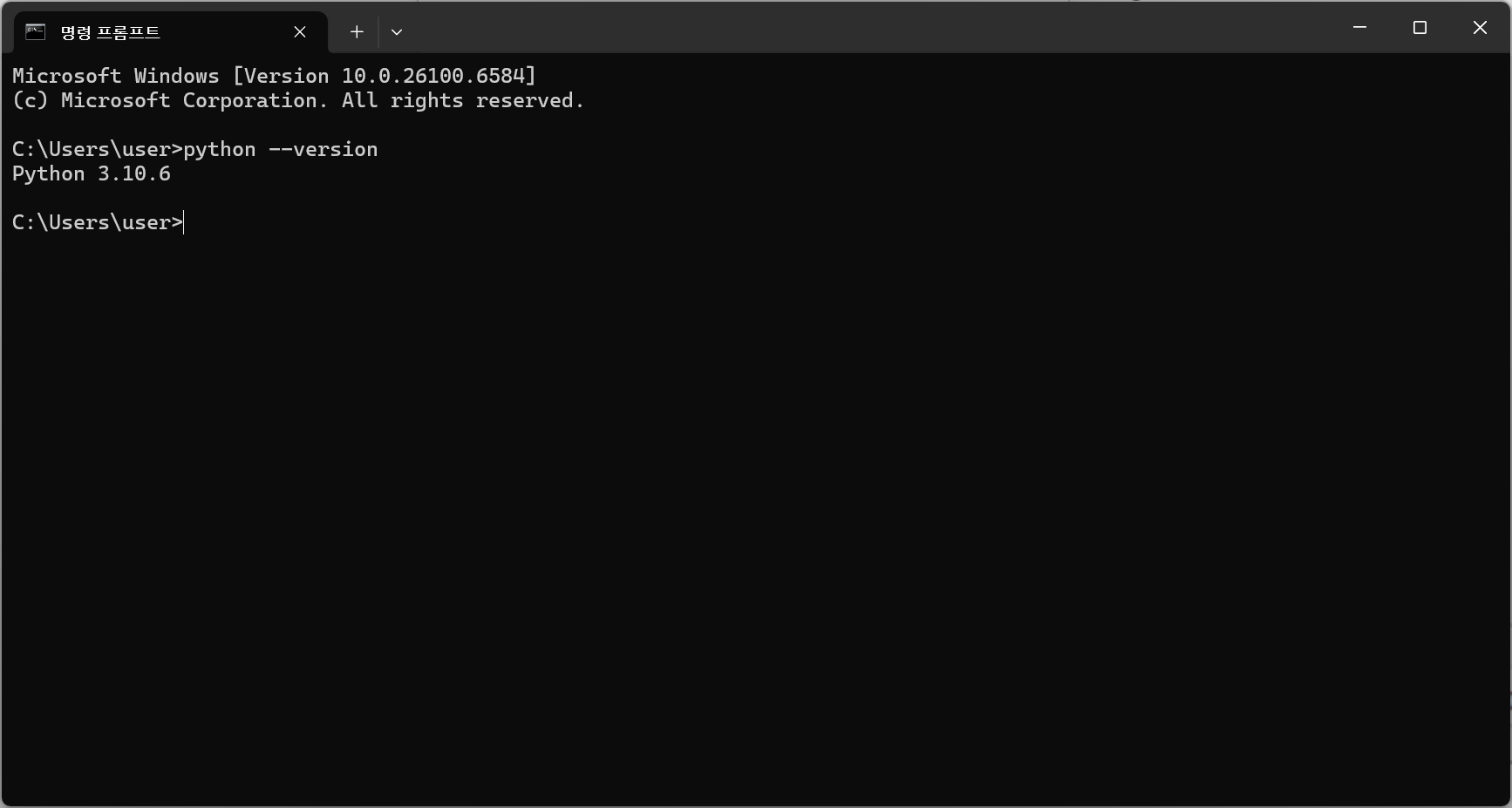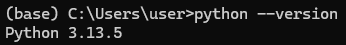 python 버전을 확인하기 위해 python --version 명령어를 치면 다음 그림과 같이 Python 3.13.5가 기본으로 동작하는 것을 알 수 있다.