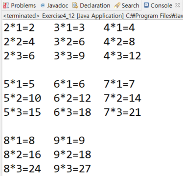[문제] 구구단의 일부분을 다음과 같이 출력하시오.