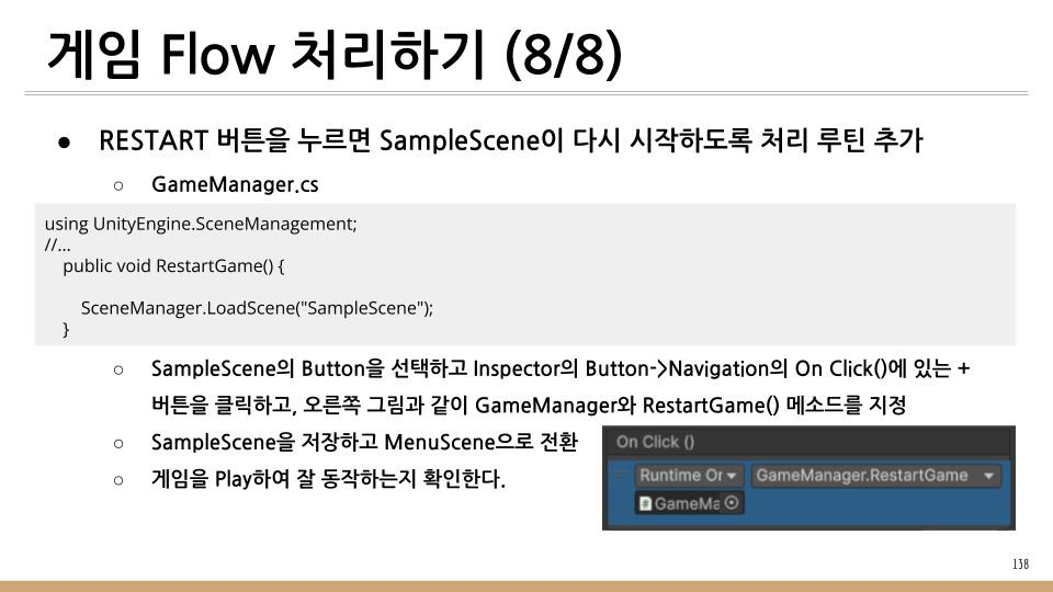 지금까지 "동 피하기 게임 만들기"를 연재하면서 마지막으로 게임 시작 시부터 종료시 재시작 등 UI 측면에서 전체적인 흐름을 다룬다.