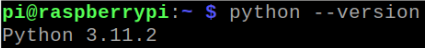 라즈베리파이에 라즈비안 OS를 설치하면 기본적으로 최신의 python이 설치되어 있다. 여기서는 v 3.11.2가 설치되어 있는 것을 다음과 같이 확인할 수 있다.